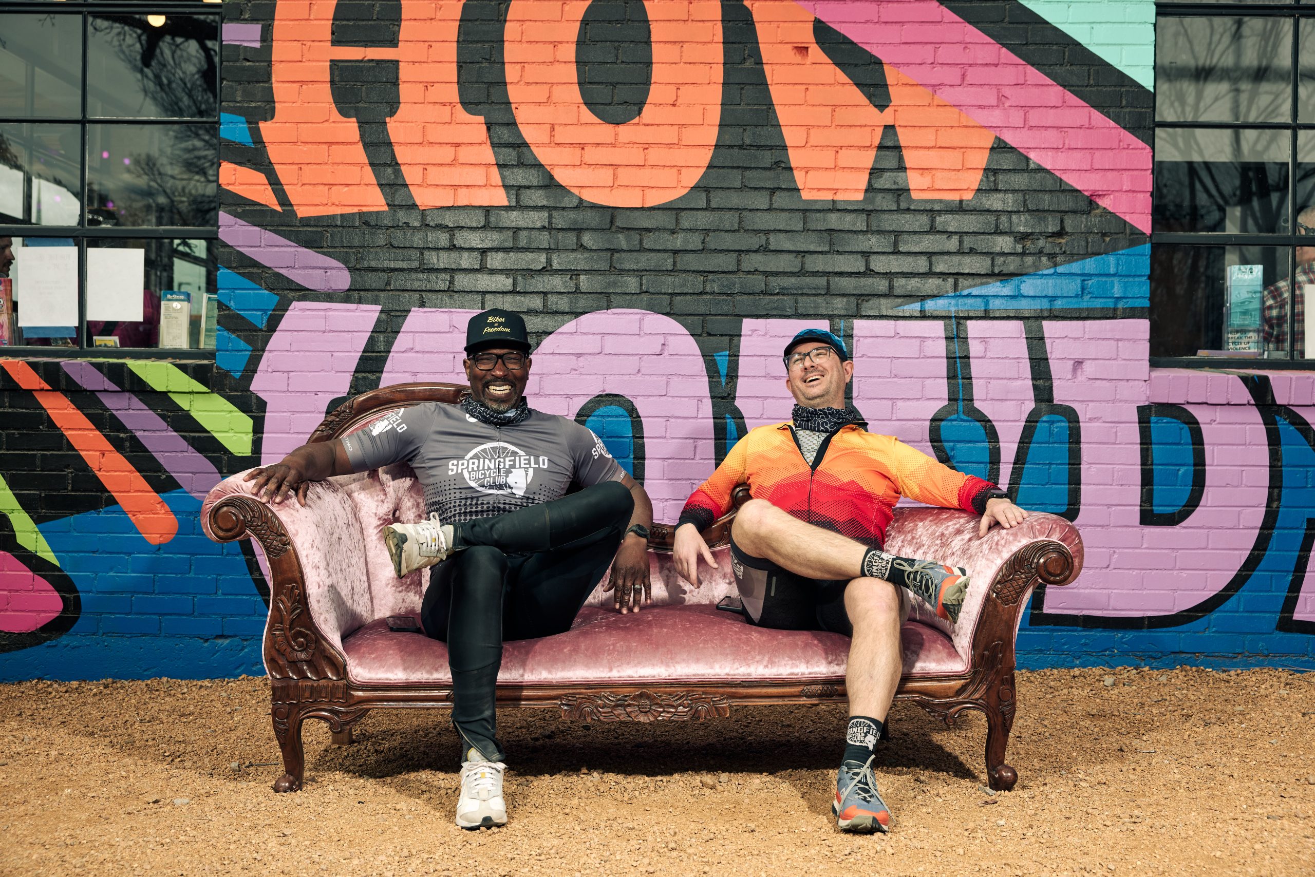 But we weren’t leaving without a photo on the chaise. The centerpiece of the whole stop is an ornate couch that Salsa hauls out to the Oklahoma countryside for no other reason than to give exhausted riders something ridiculous and wonderful to sit on. That chaise lounge is the reason I once bought a $50 pink chaise off Facebook and started hauling it out to Springfield Bicycle Club events to do the exact same thing. It’s that kind of event. The kind that inspires you to bring a little of it back home.
