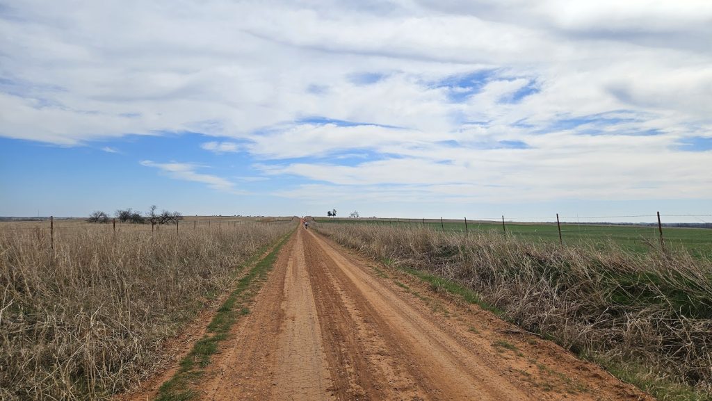 The dirt was firm and dusty, the kind that coats everything and gets into everything. I wore a buff and tried to pull it up whenever we rode through a cloud of red dust, though I suspect I inhaled a fair amount of Oklahoma regardless. My Garmin logged 28 categorized climbs on the day, but that number doesn’t tell the whole story. There were plenty more that didn’t make the list, not because they were easy, but because the terrain never really stopped rolling. It was relentless in the best possible way.
