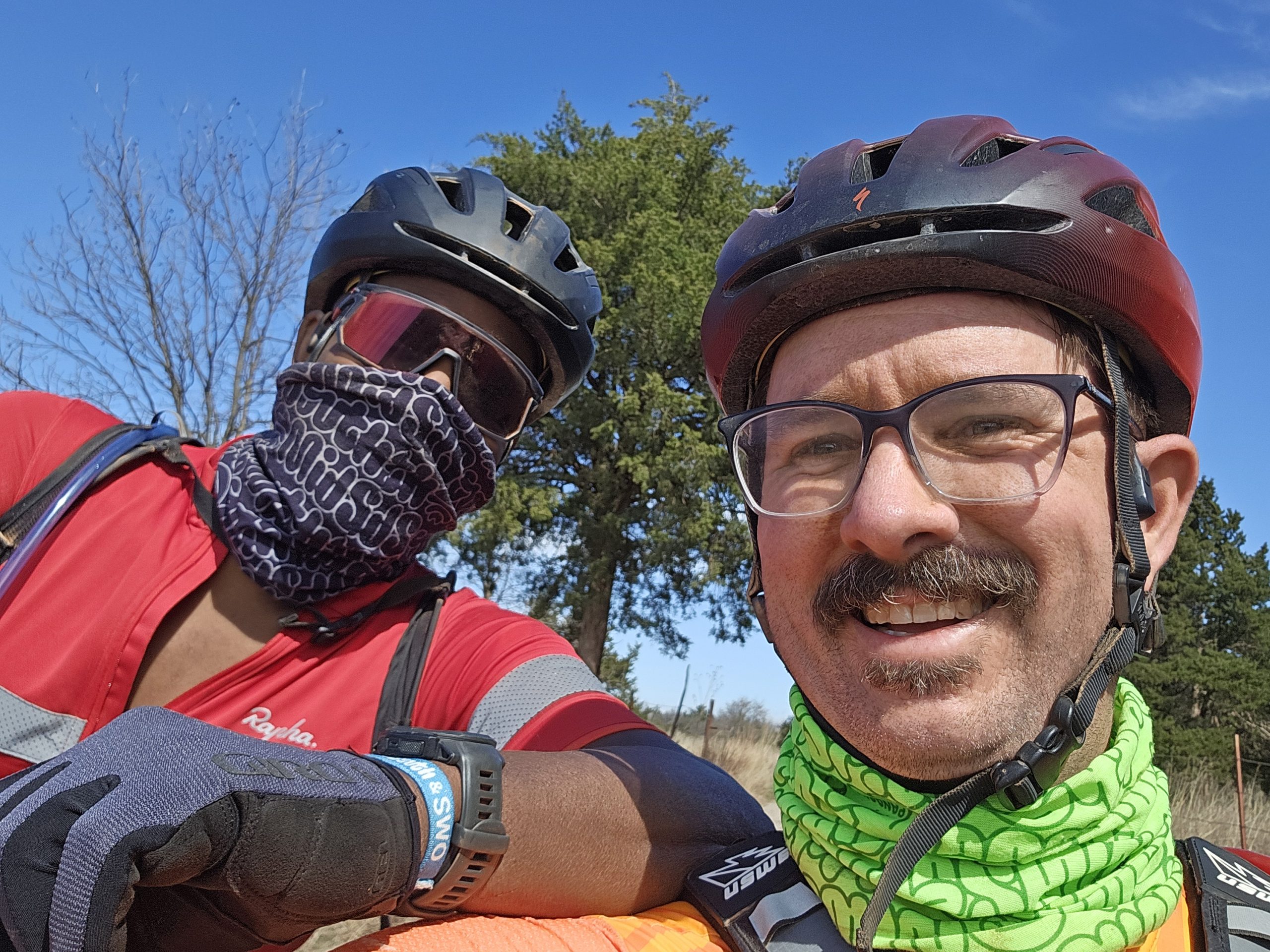 I made the trek out to Oklahoma with Mike P and Mike May. We rolled in Thursday afternoon just in time for the Denim Ride, a 12-mile cruise where you show up in your best denim vest, adorned with patches earned and collected from past adventures. It’s all about good times and chatting up fellow riders before gathering for a group photo, then rolling out together to a high point where Bobby Wintle, the race director and MC of all things Mid South, holds court.